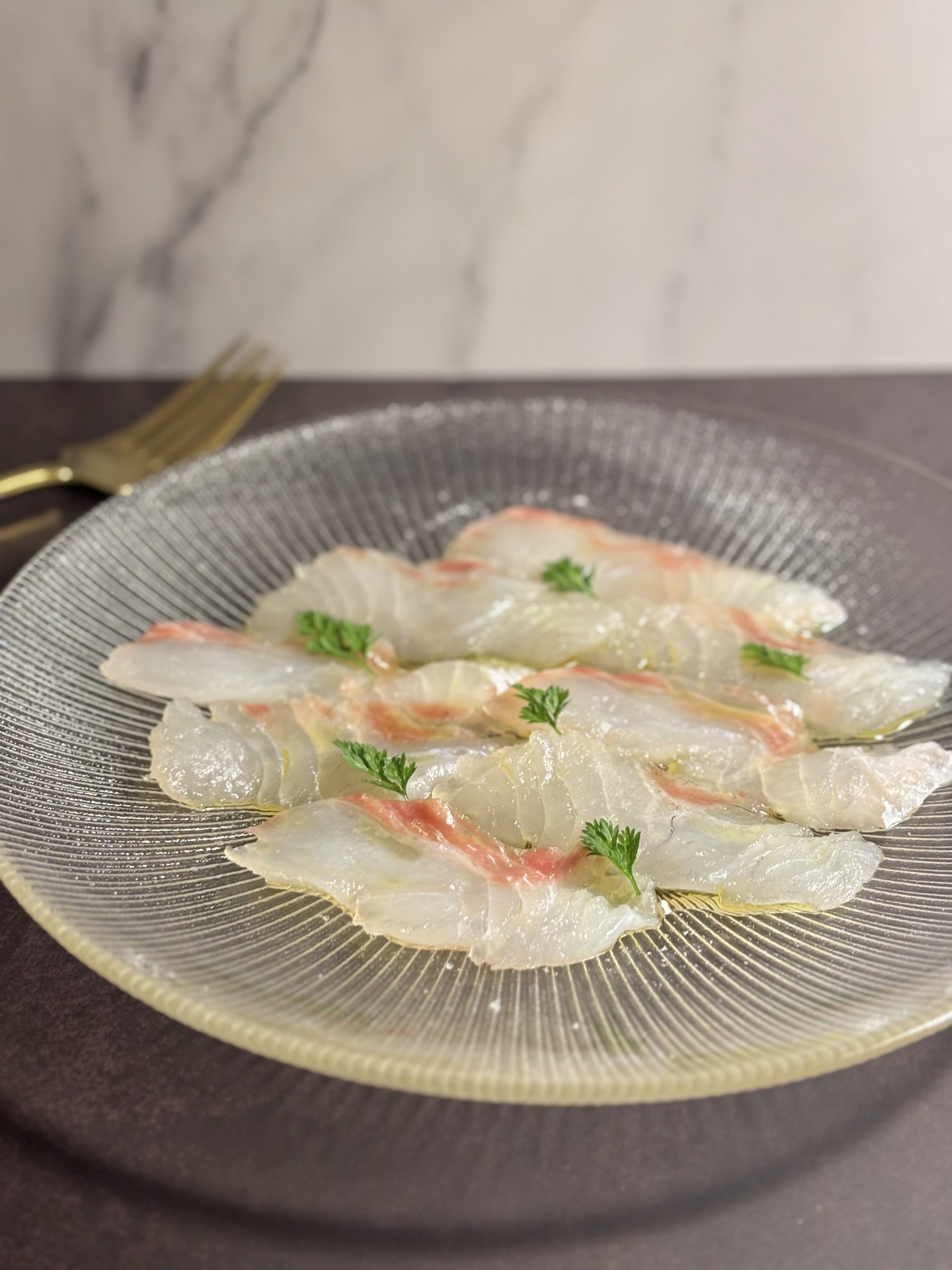 鯛とローズ蜜酢のカルパッチョ