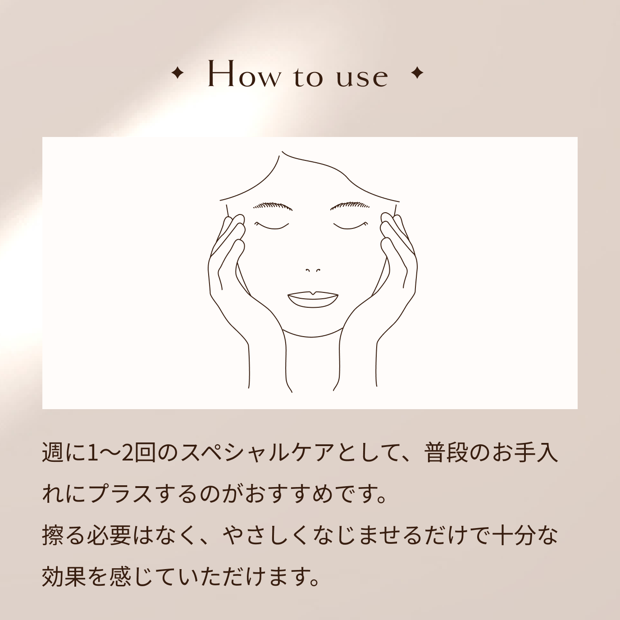 こすらずなじませるだけで、しっとりつるんとした透明肌へ。