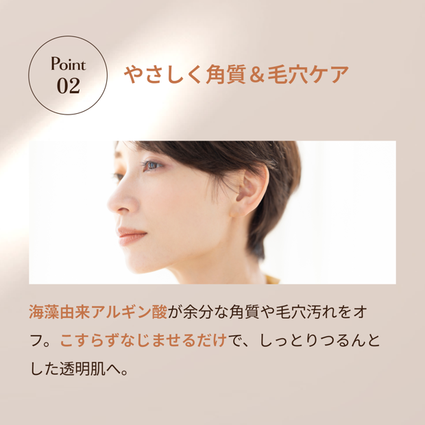 海藻由来アルギン酸が余分な角質や毛穴汚れをオフ。