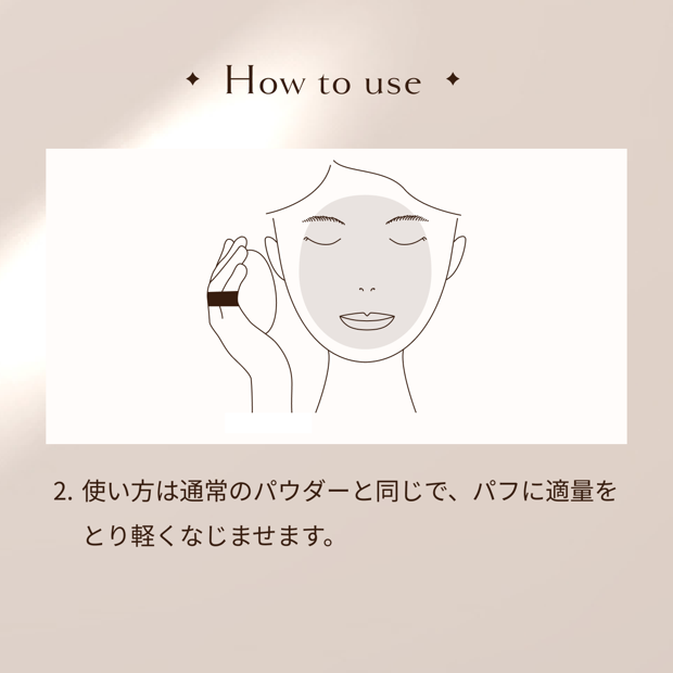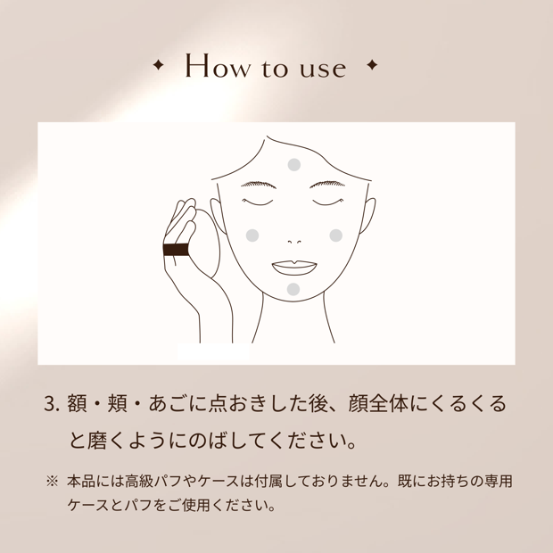 既にお持ちの専用ケースとパフをご使用ください。使用上の注意