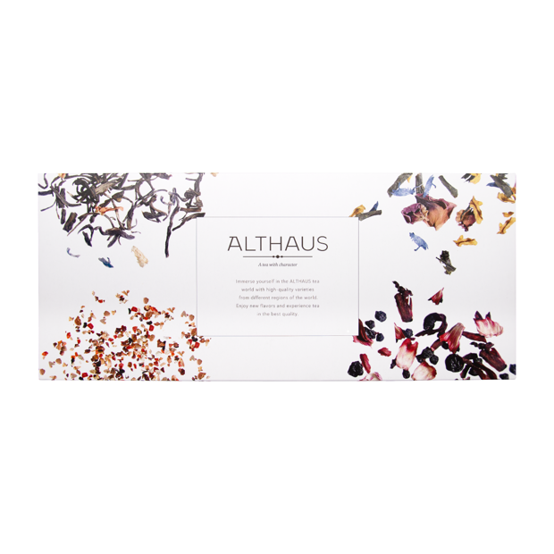 大切な想いを、より豊かに届ける特別なギフト。ドイツのプレミアムティーブランド ALTHAUS(アルトハウス) の紅茶・ハーブインフュージョン・フルーツインフュージョンから、厳選したLOOSE TEA(茶葉タイプ)8種類 を贅沢に詰め合わせたMerce Collection(メルチェコレクション)限定ギフトBOX です。こちらは、大手百貨店で期間限定発売され、多くの支持を集めた人気ギフトの特別仕様。豊かなラインナップで、メルチェにてお求めいただけるようになりました。クラシックな紅茶から、香り高いハーブ、果実感あふれるフルーツインフュージョンまで。その日の気分やシーンに寄り添い、一杯ごとに上質で穏やかな時間をお届けします。感謝や敬意をきちんと伝えたいシーンにふさわしい、品質・内容ともに満足度の高いギフトです。ご自宅用はもちろん、お中元・お歳暮、記念品、取引先へのご挨拶など、法人ギフトにもおすすめ。贈る方の印象に残る、洗練された一箱です。